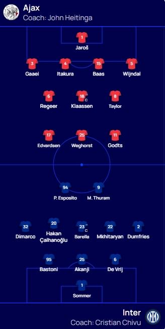 国米客战阿贾克斯:马库斯-图拉姆、皮奥首发,巴雷拉出战